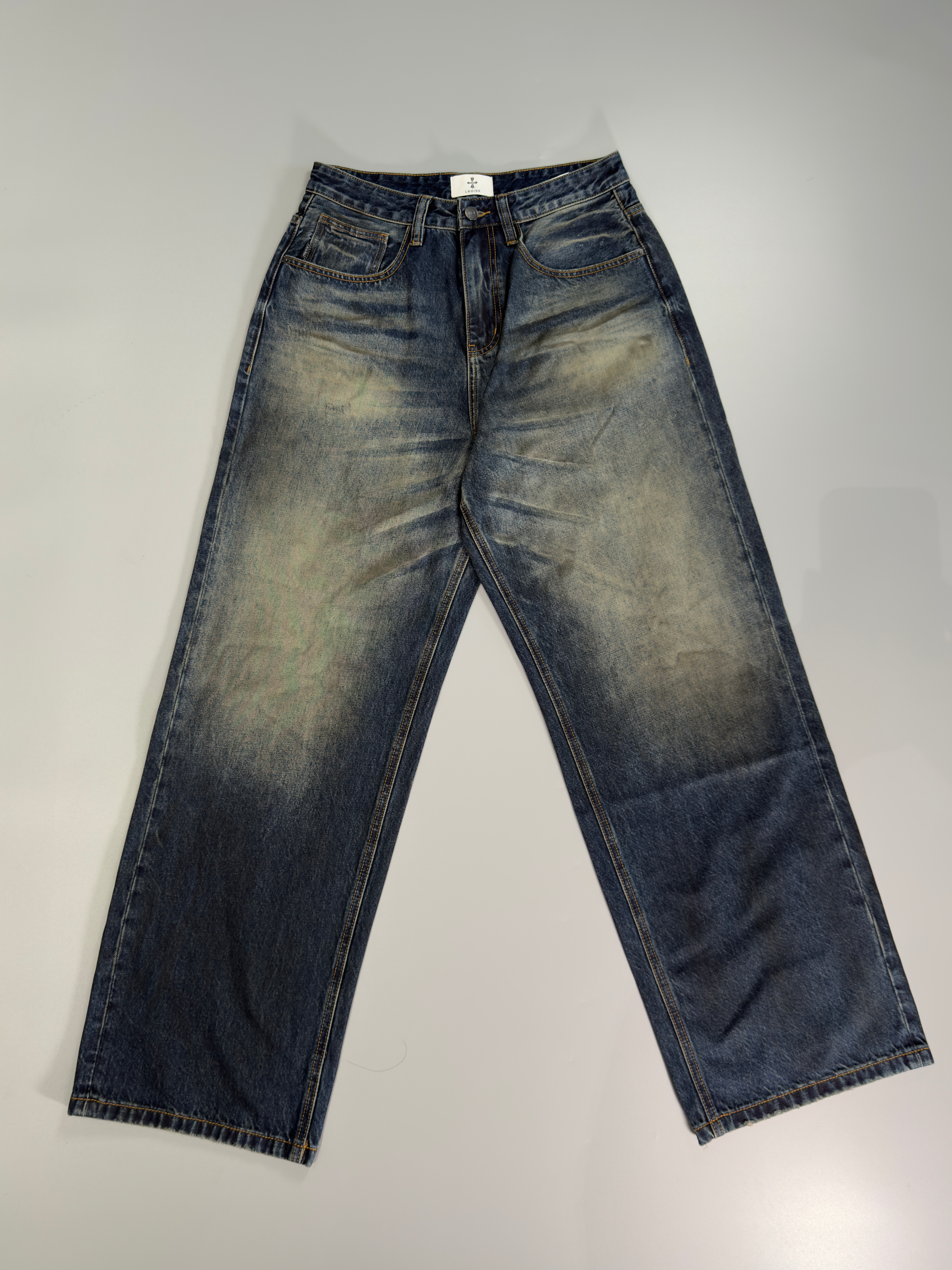 The vintage-inspired wash simulates the look of time-worn denim, blending soft contrast with an authentic texture.