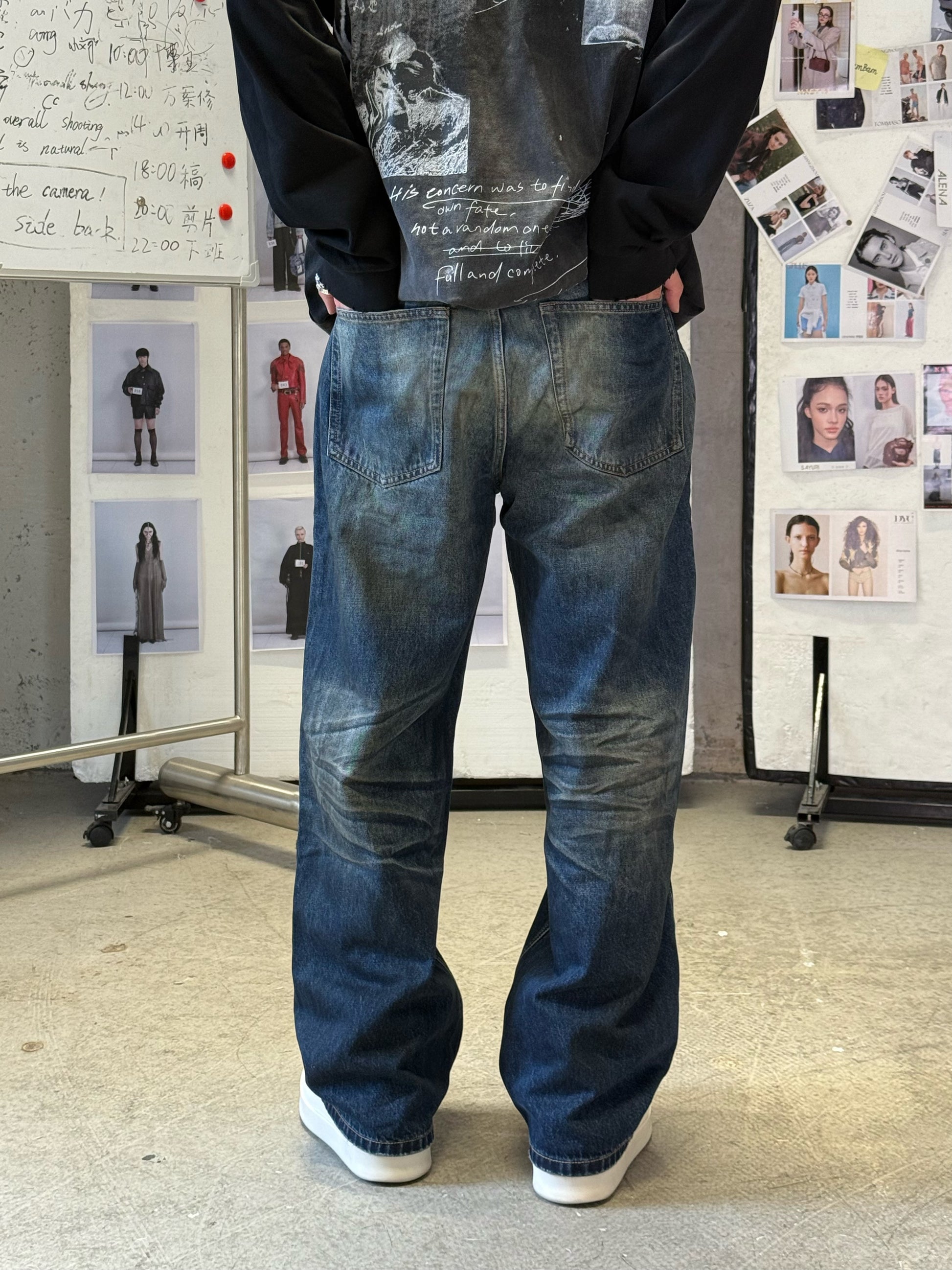 Crafted from mid-weight denim with natural whisker fading and smooth gradient washing along the thighs.
