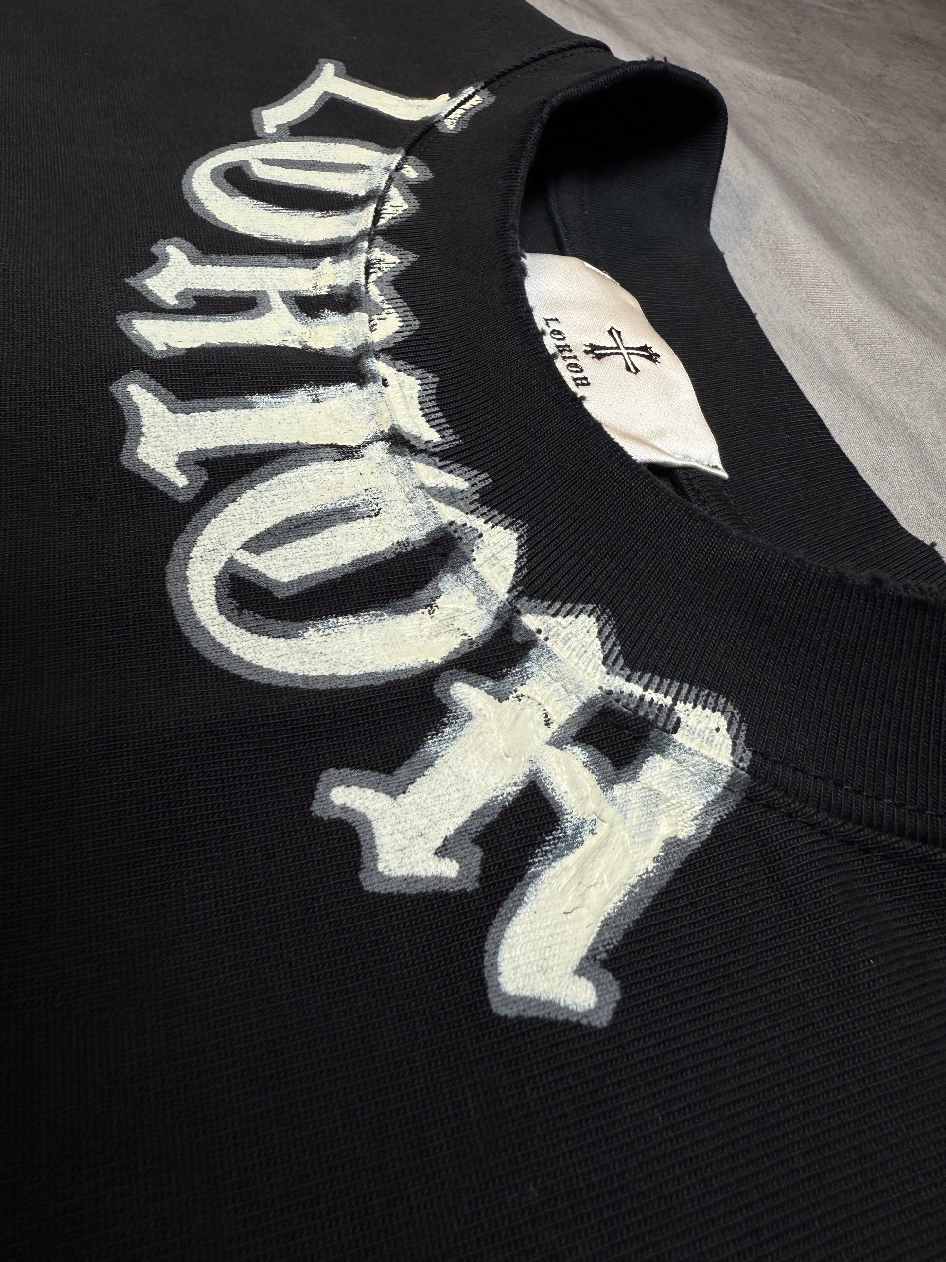 Hand-painted logo on the back
