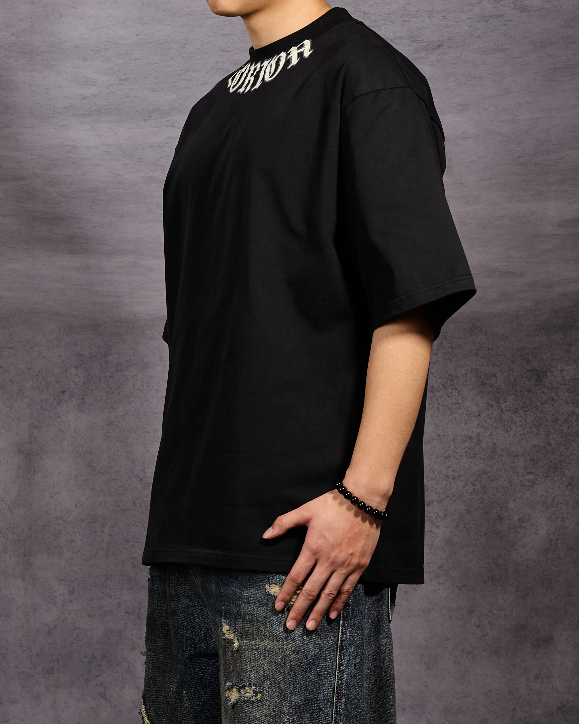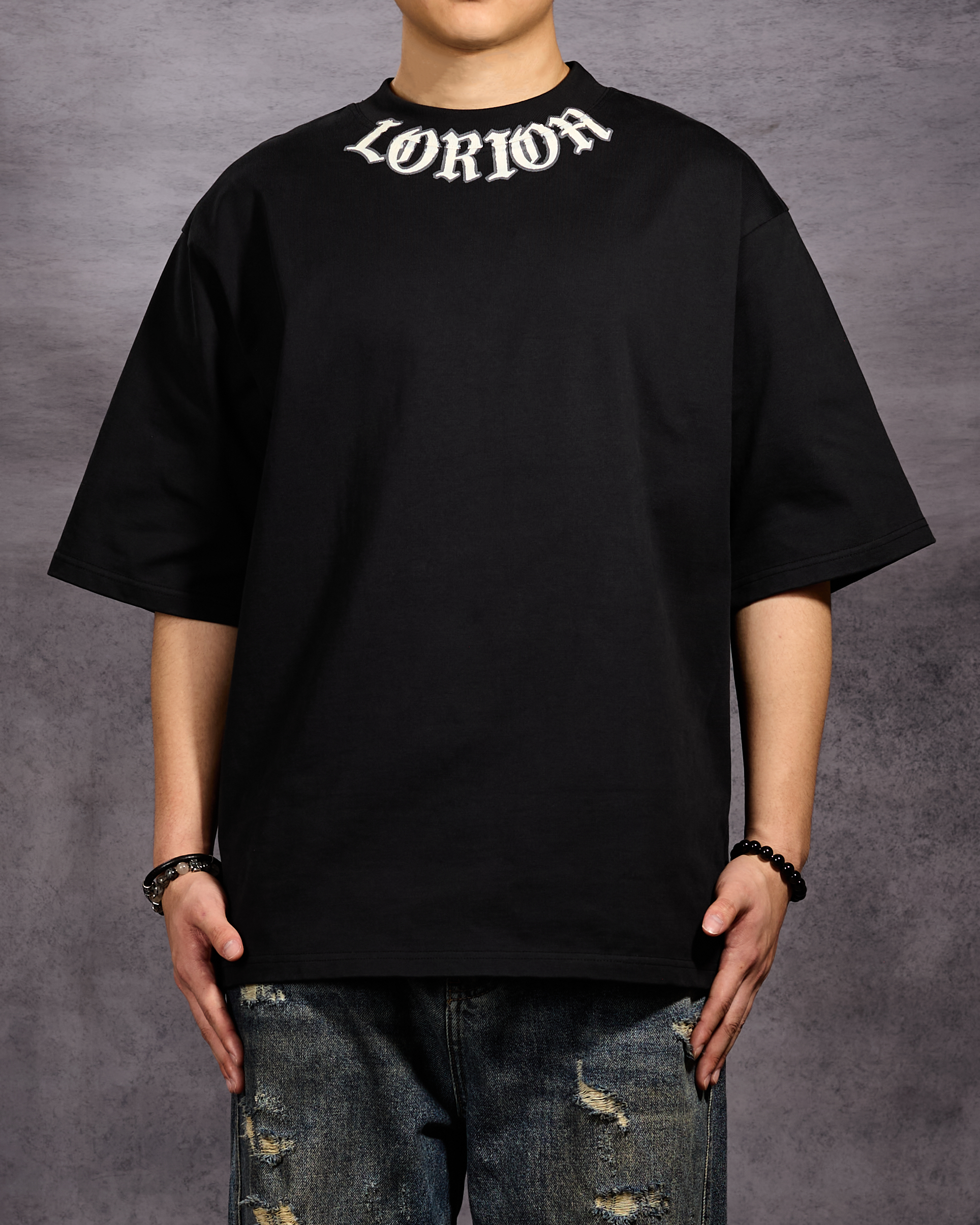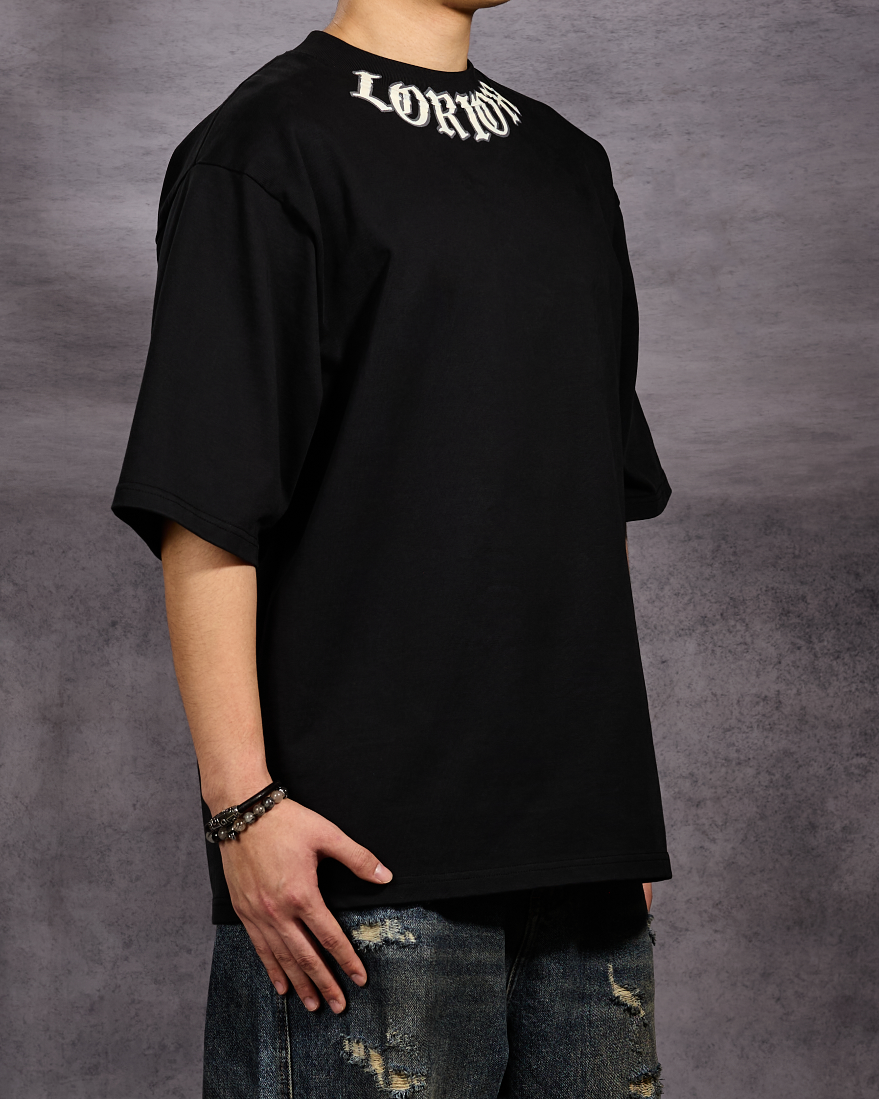 Logo arch across the neckline