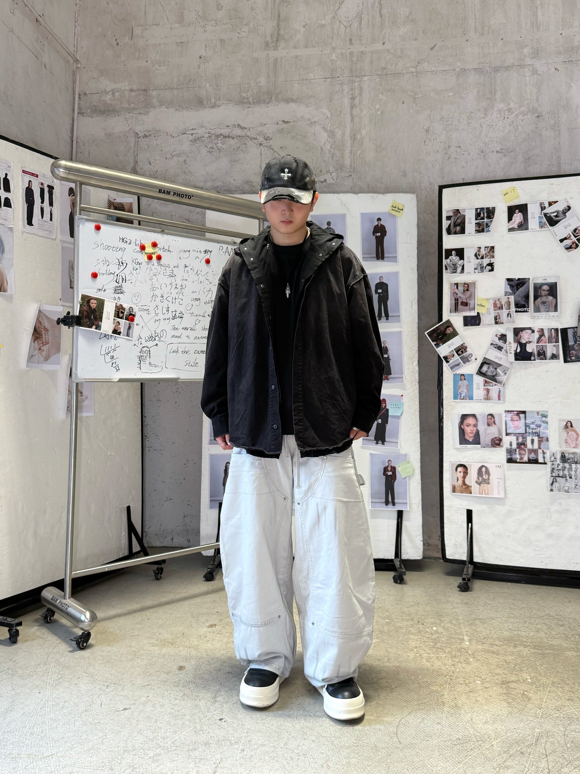 The piece merges relaxed comfort with workwear aesthetics, achieving balance between structure and ease.