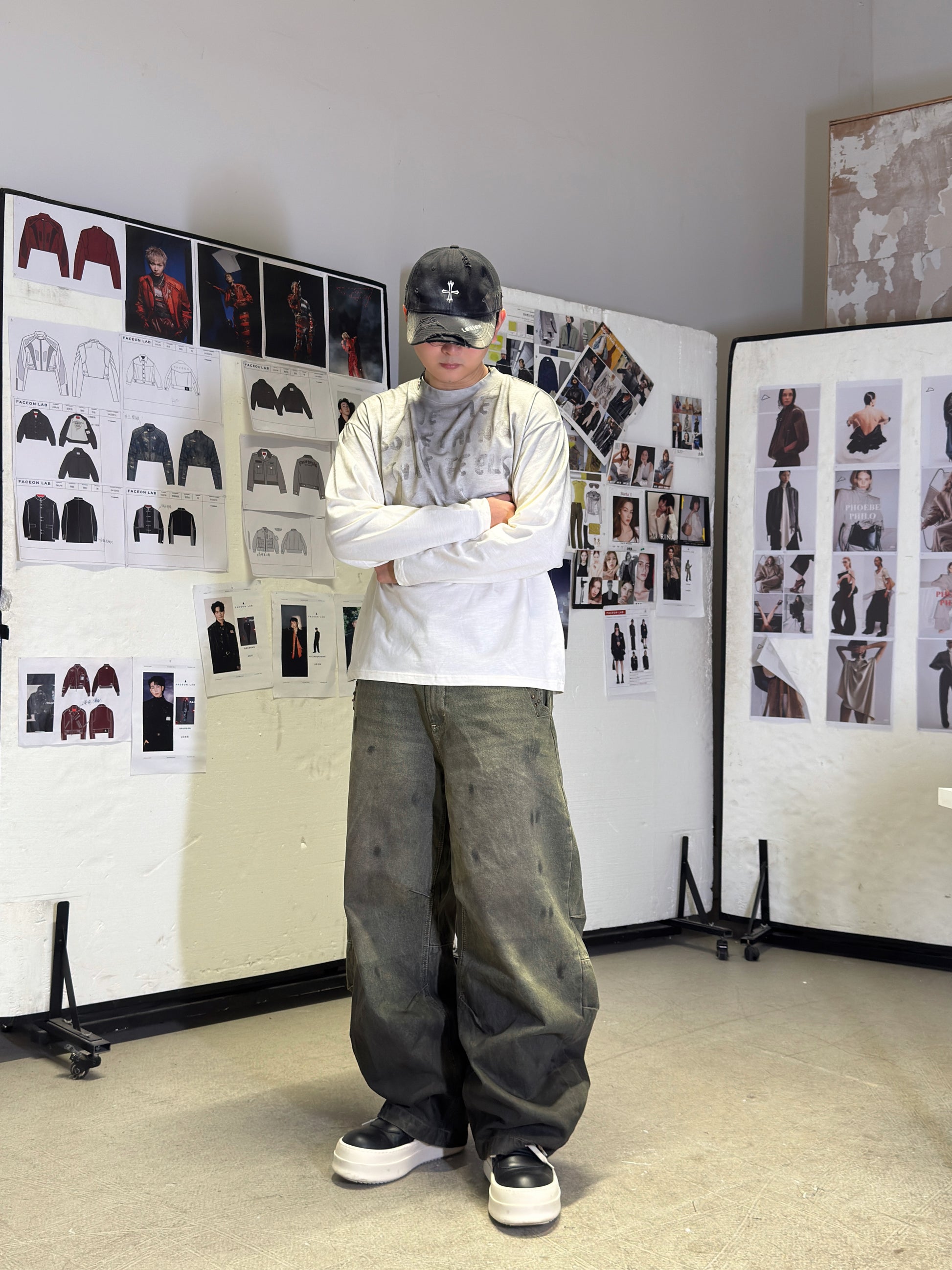 Cut in a large curved-leg silhouette, this piece blends rugged workwear detail with refined craftsmanship.